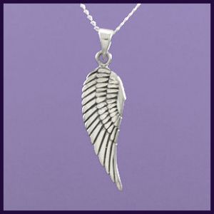 The Angel Wing necklace is detailed on both sides and made of the finest 925 Sterling Silver it comes on a 925 Italian Sterling Silver chain. The pendant can be worn either left or right facing. it has a “nice weighty feel” to it and is lovely and tactile! W12mm x H46mm and weighs approx 5.9g .