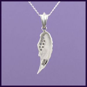 The Angel Wing necklace is stylish made from 925 Sterling Silver and with 9 Black Cubic Zirconia individually Pave set into the wing. This unusual Angel Wing comes on a Italian Sterling Silver Chain p>