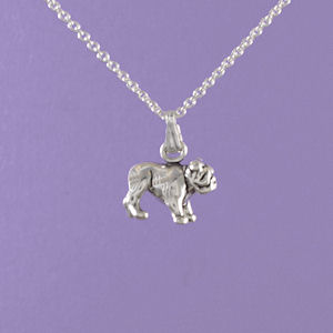 The Bulldog necklace is a 3D pendant of a standing bulldog in solid sterling silver on a 925 silver chain.