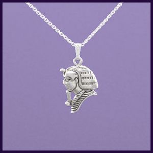 The Egyptian Sphinx necklace is a sterling silver 3D pendant of the whole sphinx on a 925 silver chain. The Eqyptian Sphinx is often seen as a guardian and found at the front of ancient egyptian temples.