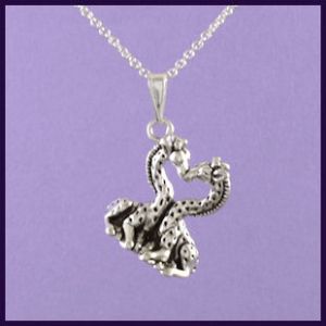 The Giraffes Kissing necklace is a sterling silver pendant of two seated giraffes kissing held on a 925 silver chain.