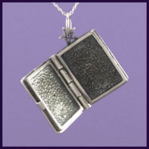 A Sterling Silver Wiccan Book of Shadows! This is a wonderful and unusual Locket. The Locket is decorated with a Pentagram surrounded with Oak Leaves with the words “Blessed Be” engraved on the front. The Silver has been oxidised inside to give an authentic look and when looked at from the side you can see the great detail as it looks like the locket has pages. This locket can hold a couple of pictures or small keepsake.