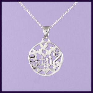 The Sister in Hearts necklace is a sterling silver pendant of the word “Sister” on a field of hearts mounted on a 925 sterling silver chain.